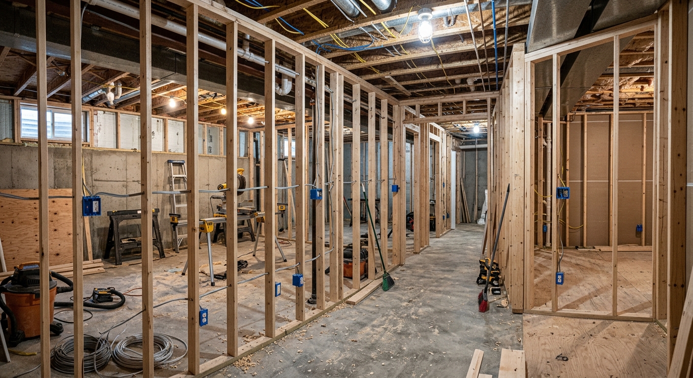 Mise aux normes électriques et installation de l'éclairage complet pour votre sous-sol.