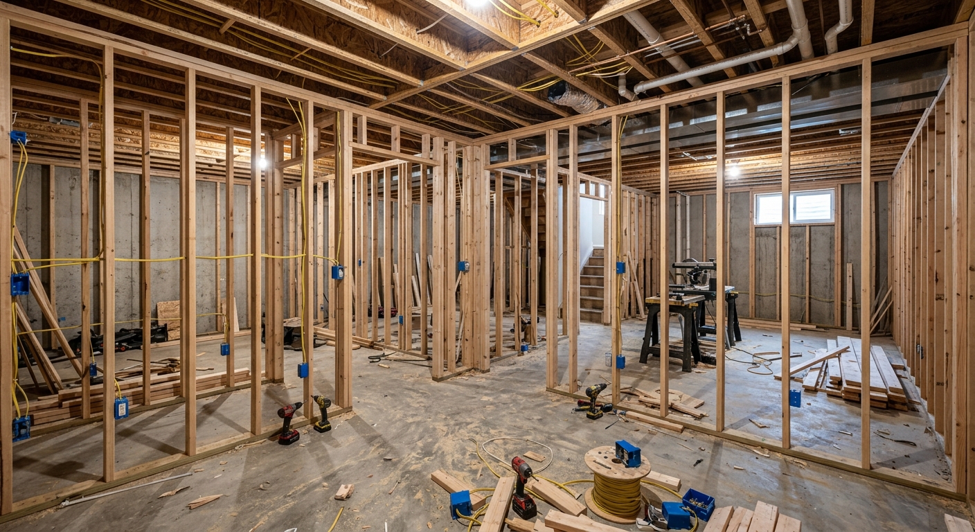 Mise aux normes électriques et installation de l'éclairage complet pour votre sous-sol.