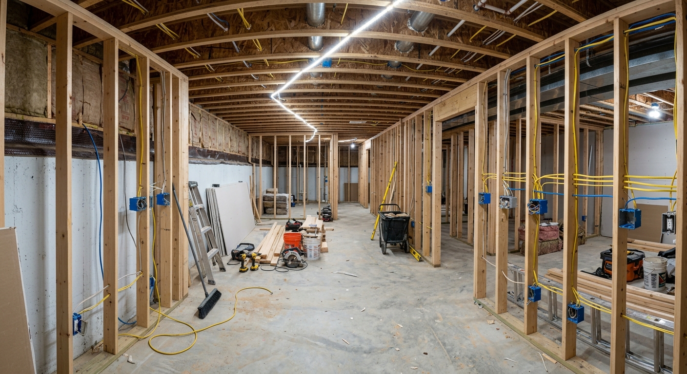 Mise aux normes électriques et installation de l'éclairage complet pour votre sous-sol.