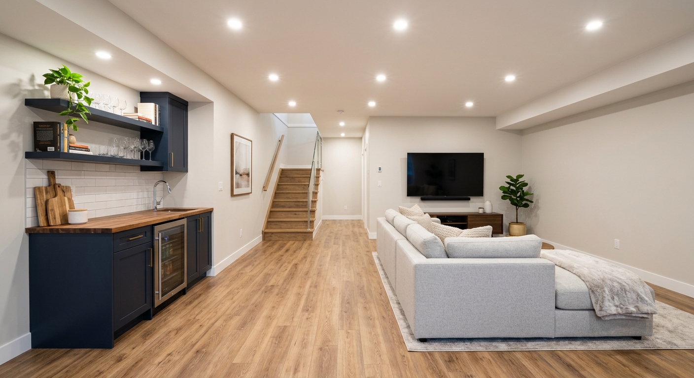 Cloisons, plancher, plafond, peinture — finition complète de votre sous-sol à Québec.
