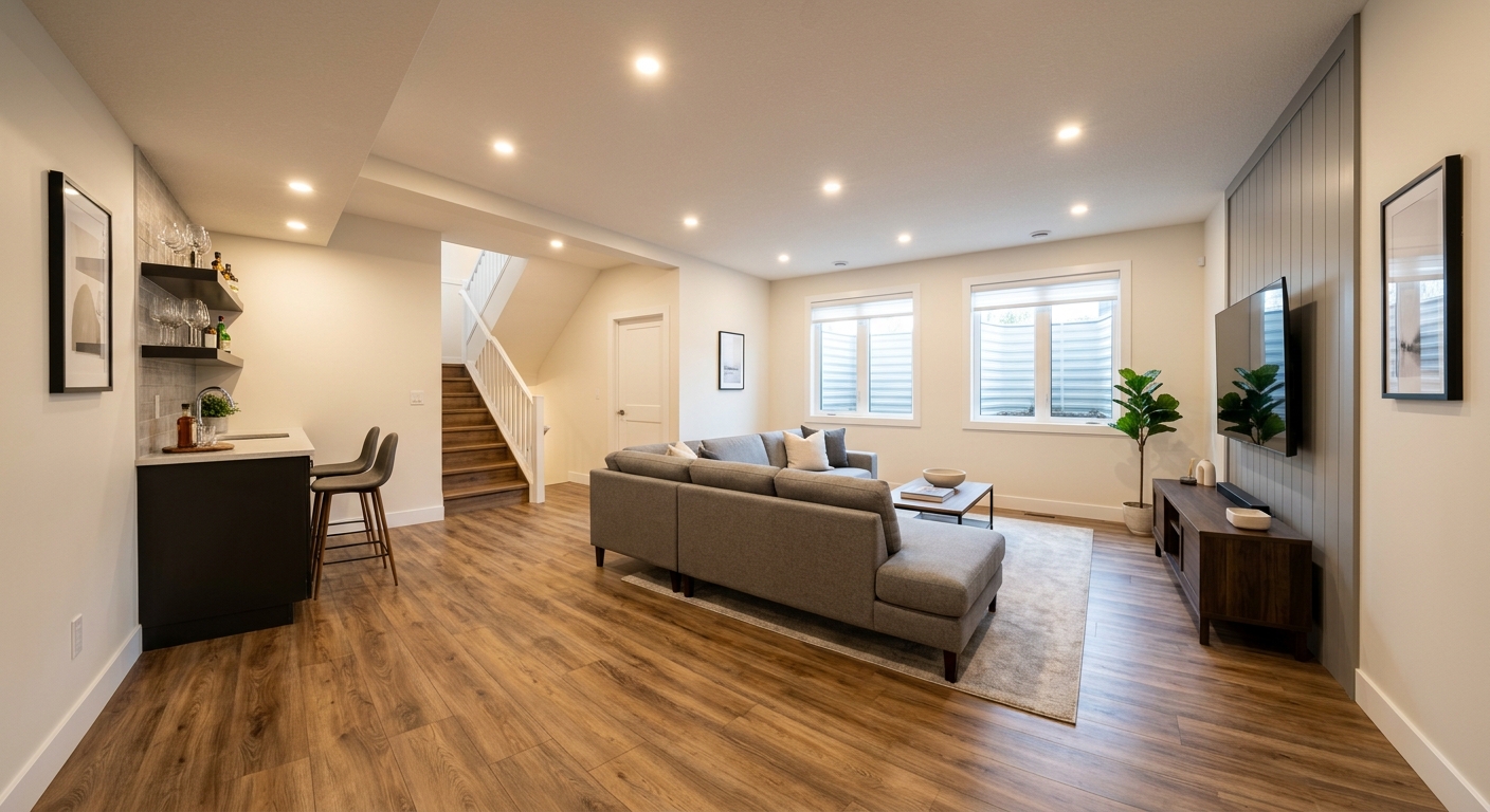 Cloisons, plancher, plafond, peinture — finition complète de votre sous-sol à Sutton.