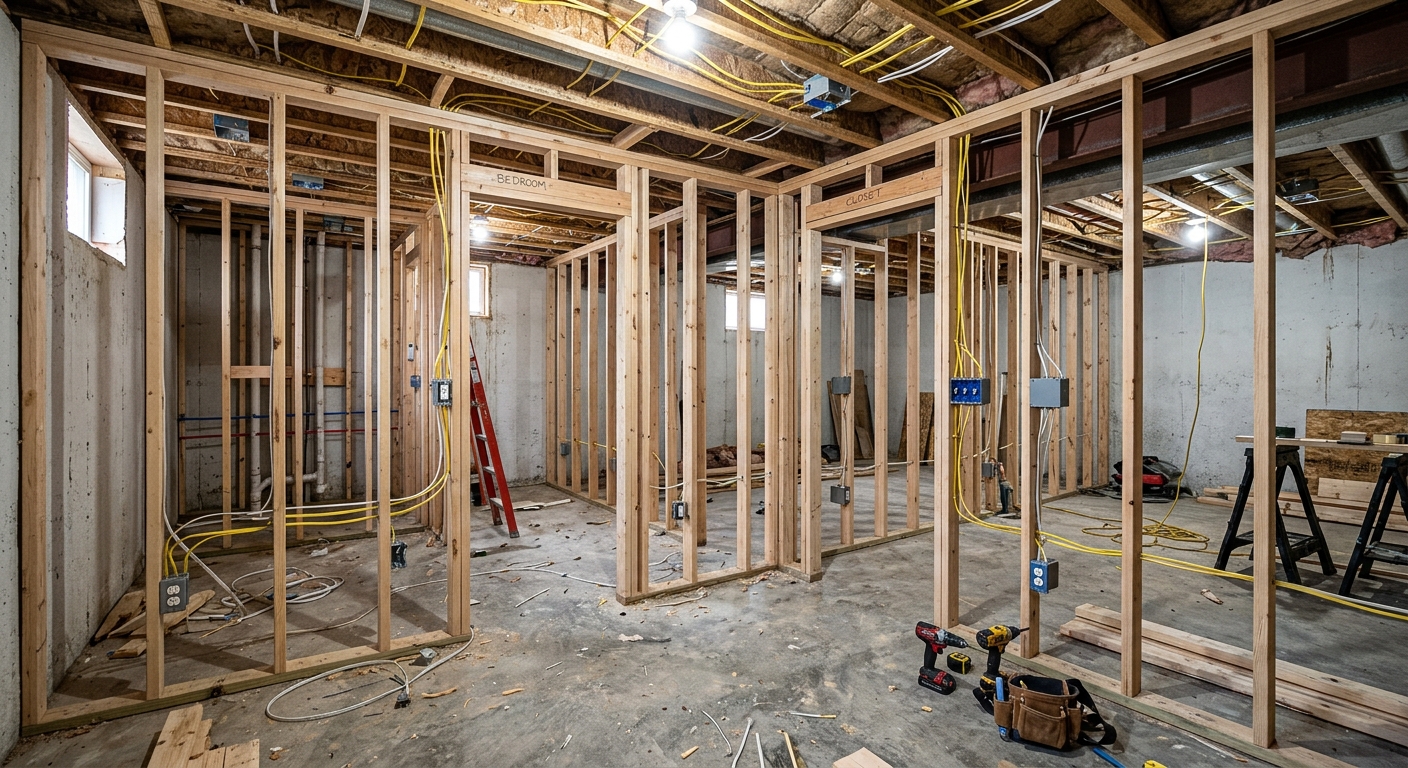 Cloisons, plancher, plafond, peinture — finition complète de votre sous-sol à Wendake.